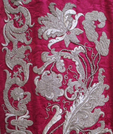 Rote Kasel mit Silberfadenstickerei, Detail, 1733; Goslar-Grauhof, ehem. Stiftskirche St. Georg