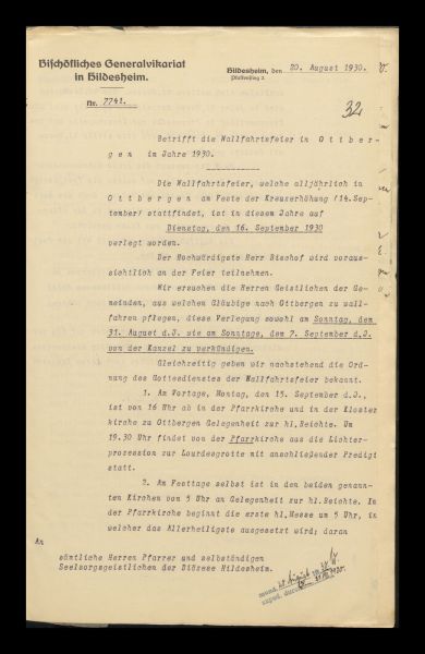 Im Bistumsarchiv finden sich neben den Archivalien zum Wallfahrtsort Ottbergen auch viele Dokumente und Fotos zu weiteren Wallfahrtsorten im Bistum Hildesheim, wie z. B. Germershausen.